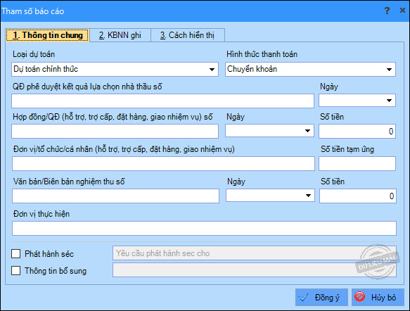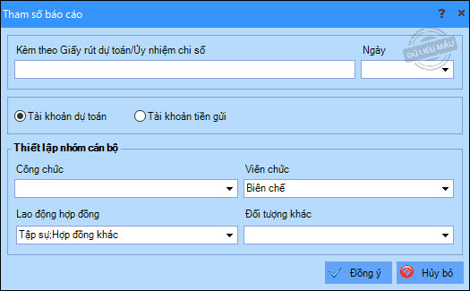 Khai báo tham số báo cáo, nhấn Đồng ý.