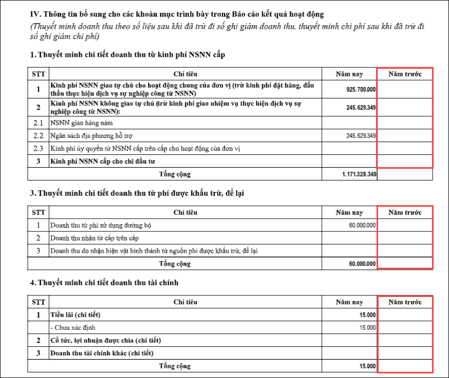 In báo cáo không hiển thị số liệu ở cột năm trước