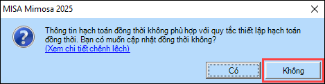 6. Nhấn Cất. Nhấn Không trên thông báo để chương trình giữ nguyên hạch toán đồng thời anh/chị vừa nhập ở trên.