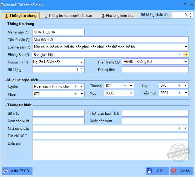 2. Khai báo Thông tin chung của tài sản.