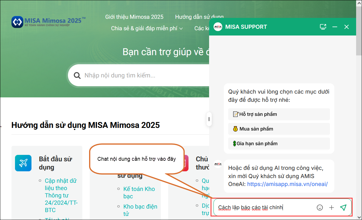 2.2 Chat từ trang hướng dẫn sử dụng online