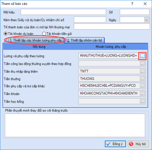 – Chương trình mặc định thiết lập công thức cho khoản lương, anh/chị có thể nhấn Đồng ý để in luôn mẫu 09 hoặc thiết lập lại tham số báo cáo theo mong muốn của đơn vị.