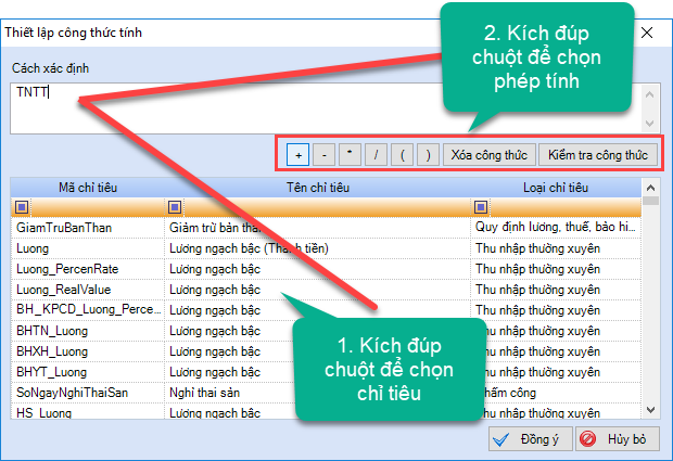 - Thiết lập công thức cho từng khoản lương theo hướng dẫn ở hình dưới.